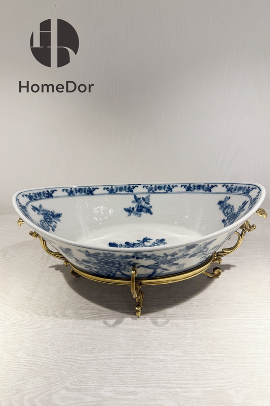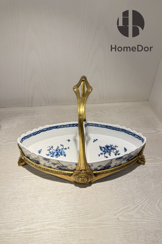 HomeDor × FH&Home | Exquisita bandeja de frutas de porcelana azul y blanca con asas de libélula
