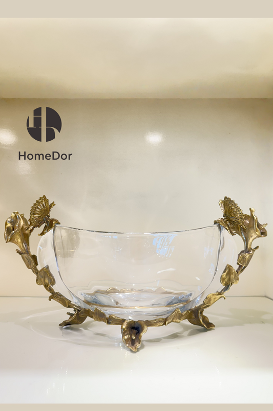 HomeDor × FH&Home | Exquisita bandeja de frutas de cristal con detalles florales y de mariposas de latón