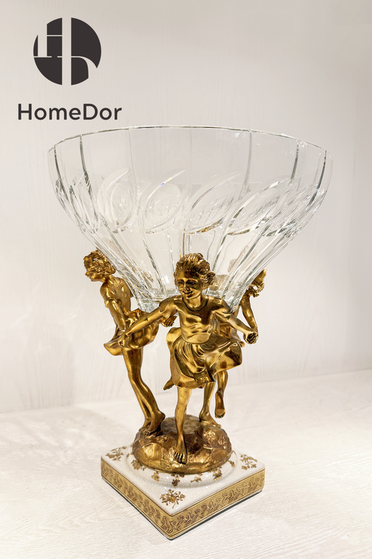 HomeDor × FH&Home | Colección Praga: Exquisito frutero de cristal con chicas de latón