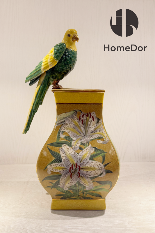 HomeDor × FH&Home | Exquisito Jarrón de Porcelana con Urraca