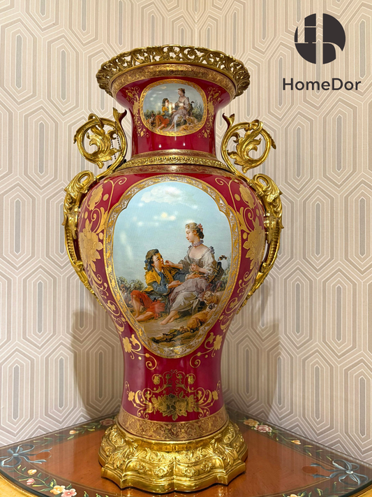 HomeDor Imperial Red Baroque Copper-Mounted Porcelain Vase
