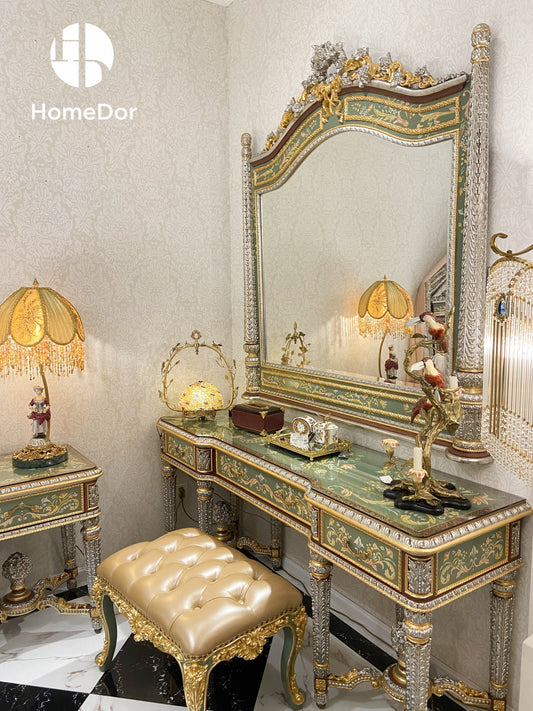 HomeDor Luxury Rococo Design Brass Accent Entry Mirror