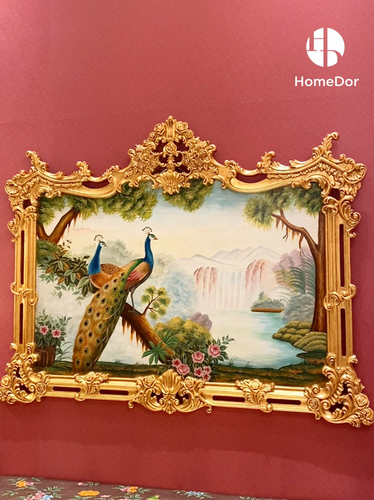 HomeDor × FH&Home | Decoración de pared con pavo real y natural, marco barroco tallado y opulento
