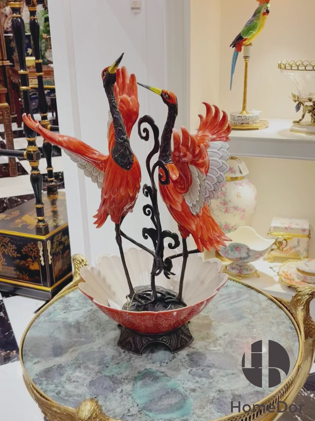 This striking centerpiece features a dynamically posed dancing crane pair, with vivid detailing and elegant wing spreads. Resting on an exquisitely crafted base adorned with classic Chinese cloud motifs, it blends timeless oriental design with luxurious finish. Symbolizing longevity and prosperity in Chinese culture, this piece is the perfect focal point for dining tables, entry consoles or mantels, complementing both modern and traditional decor styles. An ideal artistic accent for your home and a thoughtful gift for special occasions like weddings and housewarmings.