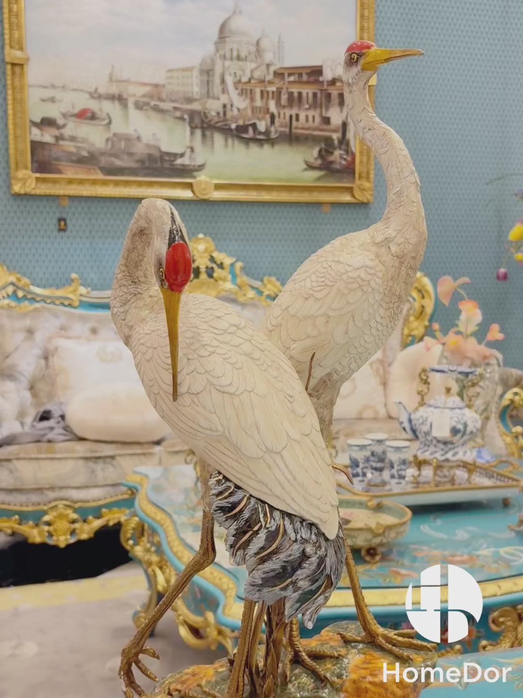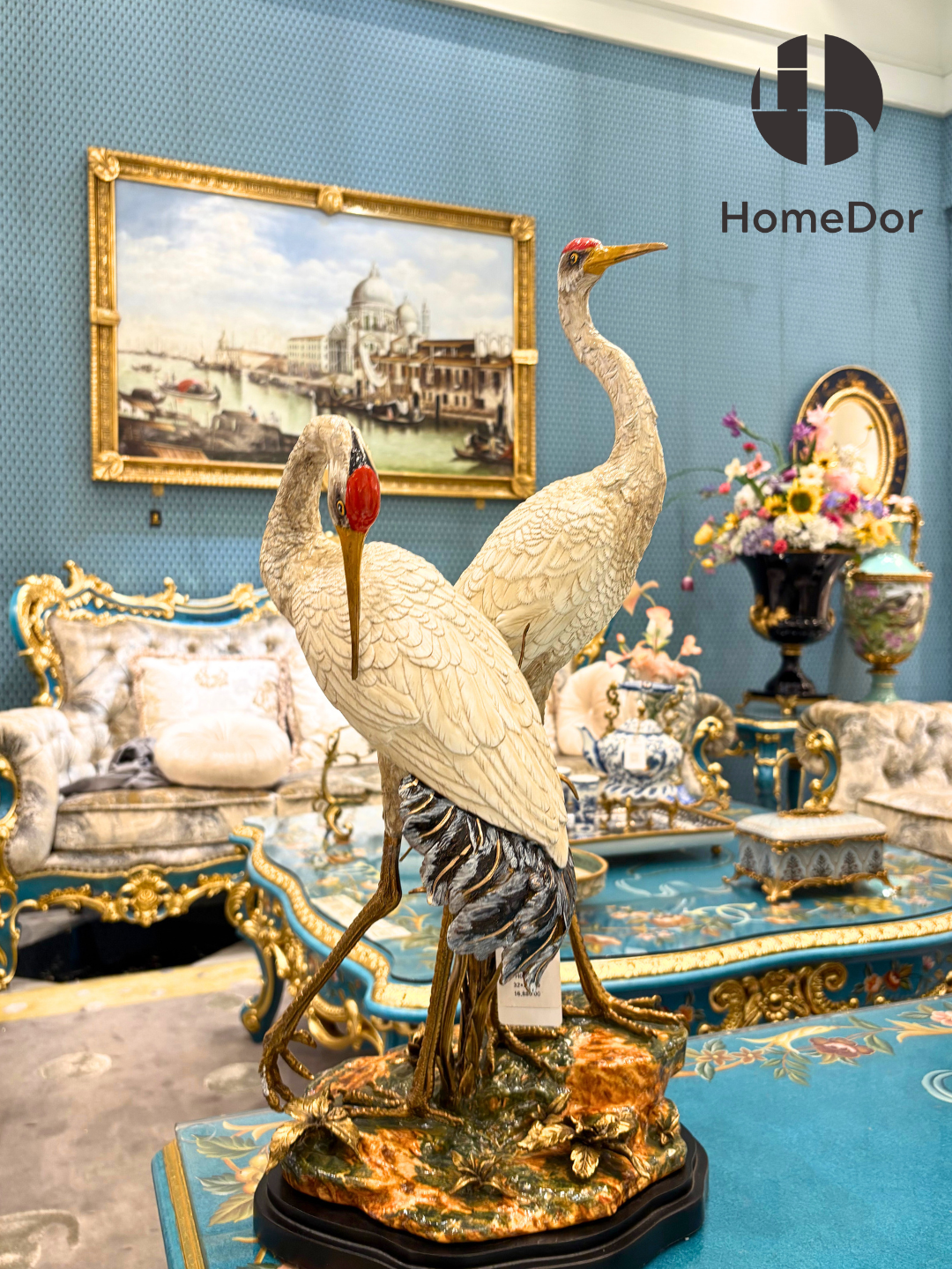 HomeDor Elegant Red-Crowned Crane Couple Porcelain Sculpture