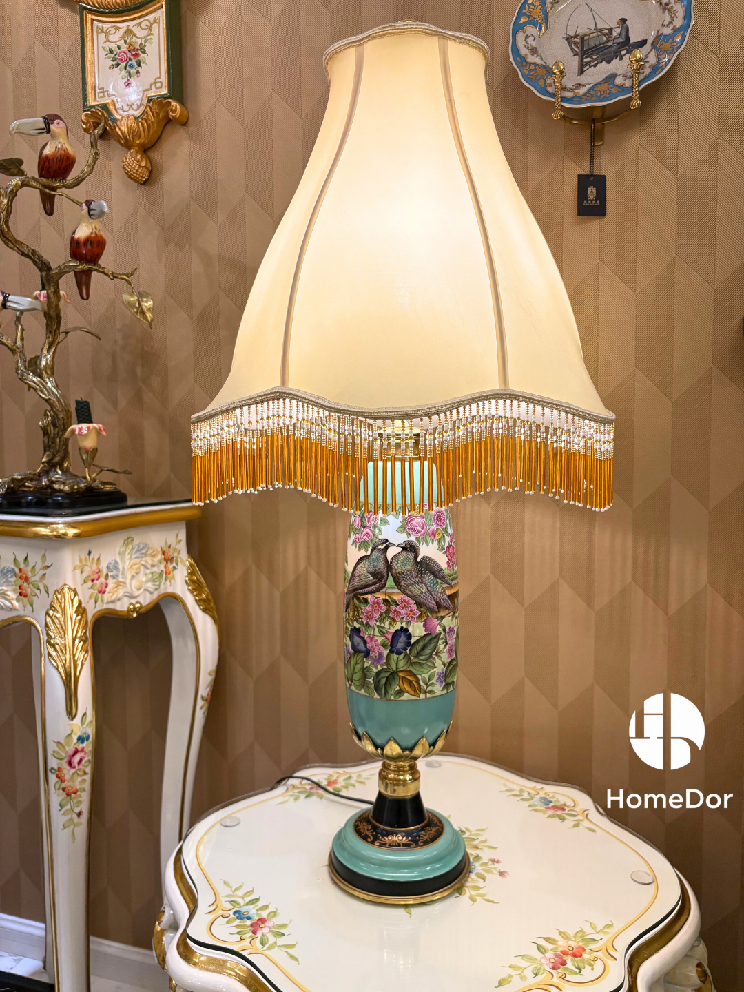 Lámpara de mesa turquesa con diseño floral de pájaros de HomeDor Chinoiserie