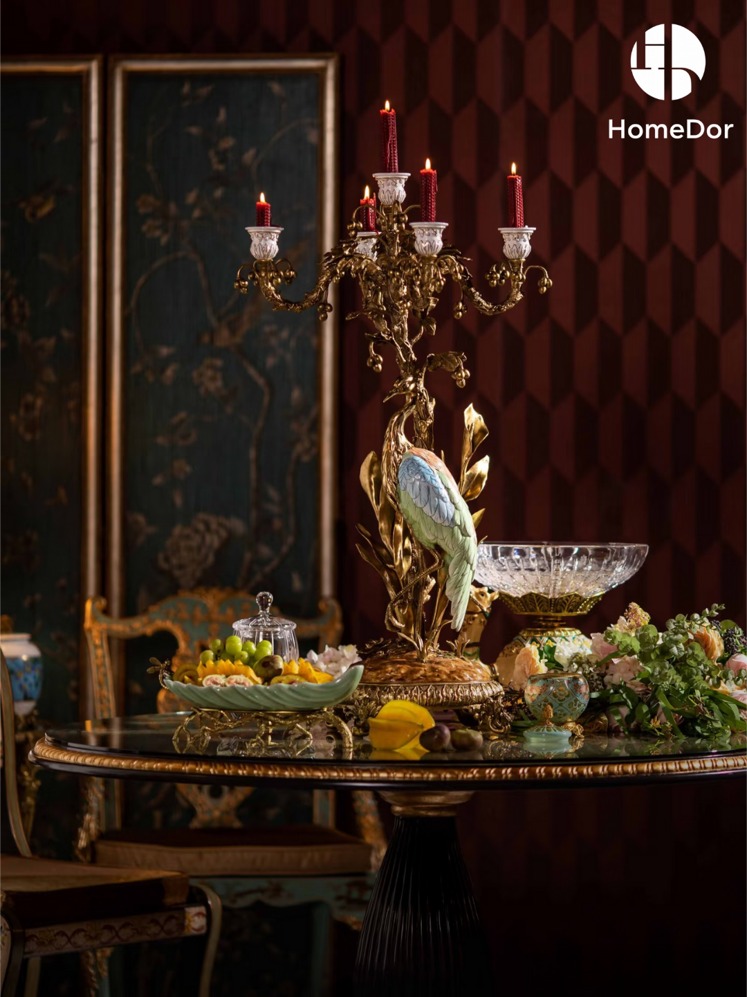 Elevate your decor with the Artistic Colorful Crane 5-Arm Candelabra—a vivid blend of artistic whimsy and vintage luxury, perfect for adding opulence to living rooms, entryways, or dining spaces.This 5-arm candelabra features a gleaming gilded frame (sculpted into intricate branch details) paired with a vibrant, artistically designed colorful crane: its feathers showcase rich blues, greens, and oranges (a decorative twist on traditional crane styling). The 5 elegant white candle holders balance form and function, while the ornate textured base adds stability and refined charm.Ideal for eclectic luxury, decorative art, or vintage-inspired spaces, this candelabra acts as a striking focal point. Whether displayed in a living room corner or dining area, it brings unique personality and timeless sophistication to any interior.
