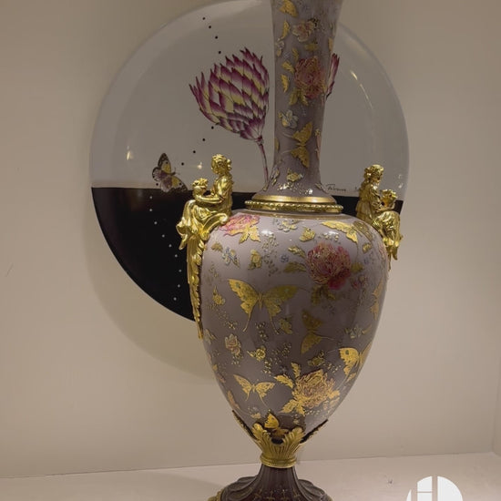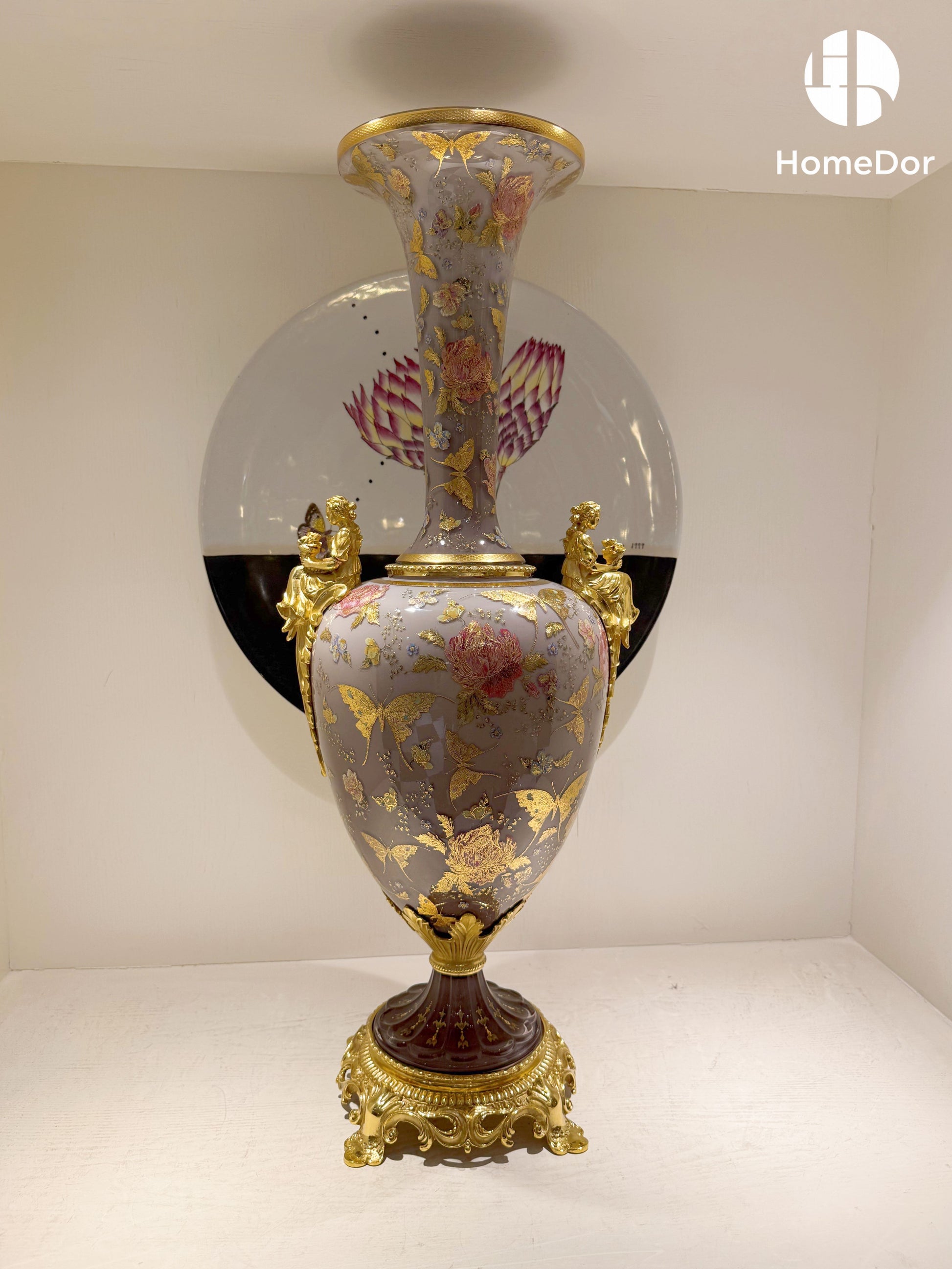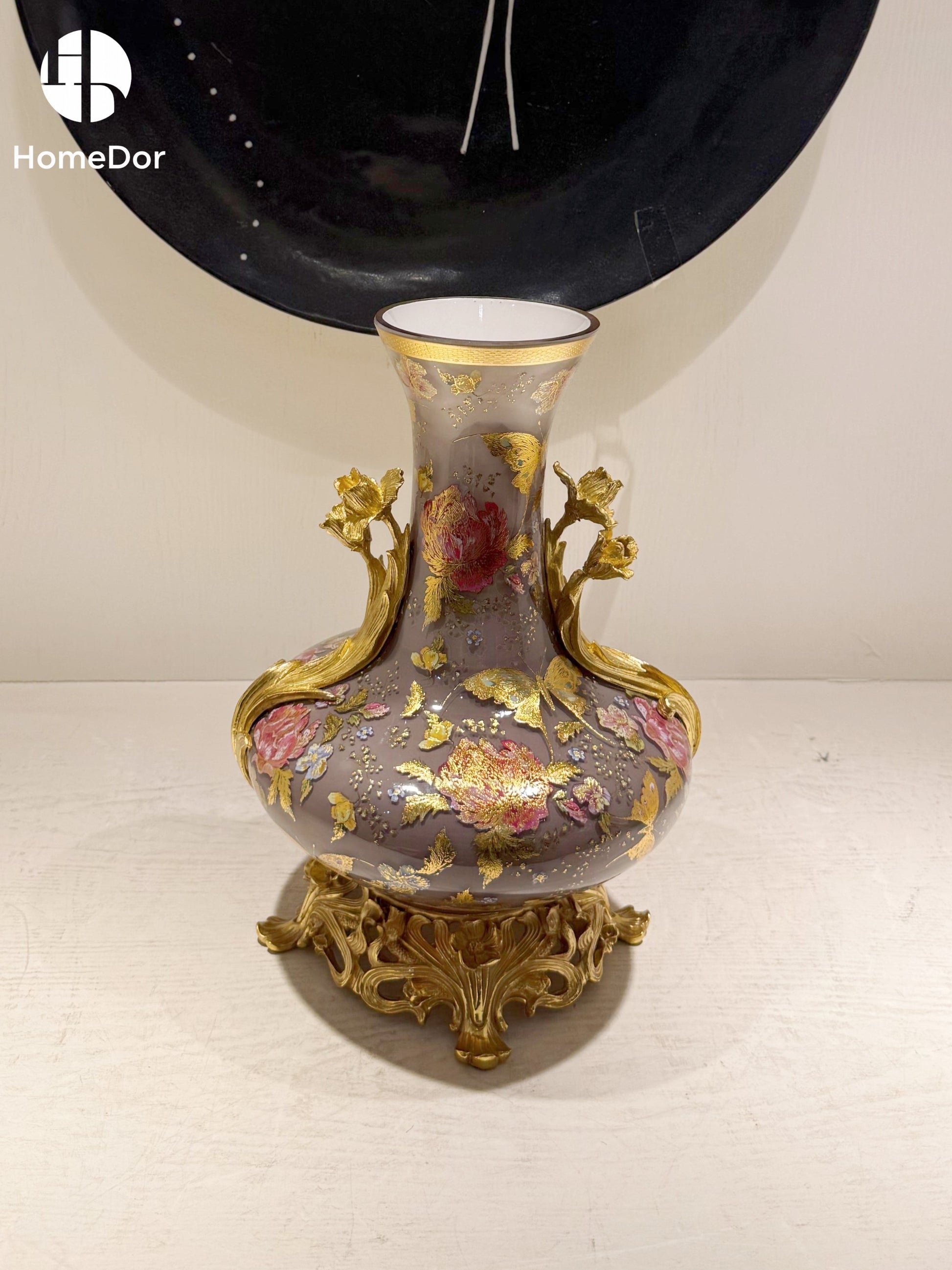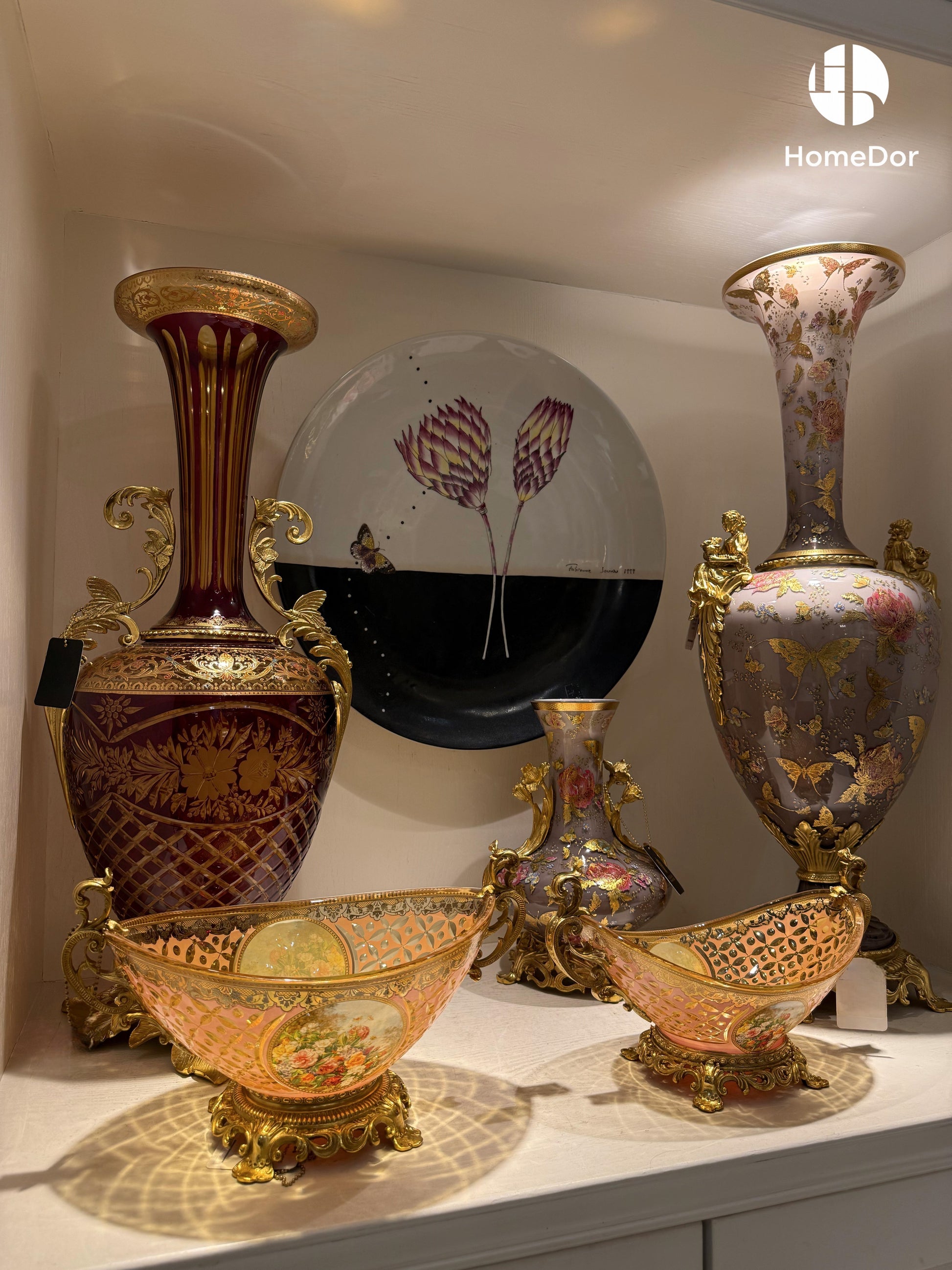 Elevate your interiors with the Aurora Glass Etched Floral Set—a curated collection of opulent decor pieces (including a tissue box and two statement vases) that blend the ethereal glow of Aurora glass with intricate etched floral and butterfly motifs. Each piece features a rich, translucent base (hued in a deep, luminous tone) adorned with delicate etched blooms (soft pinks, muted fuchsias) and gilded butterfly accents, paired with ornate brass detailing (scrollwork handles, pedestal bases) for a timeless, regal aesthetic.The tissue box offers stylish storage with a decorative brass lid; the vases, with their sculpted brass armatures, shine as standalone art pieces or vessels for lush floral arrangements. Together, this set infuses formal living rooms, dining sideboards, or luxury entryways with the soft, luminous charm of Aurora glass—catching light to reveal subtle color shifts while the etched motifs and brass accents add layers of refinement.