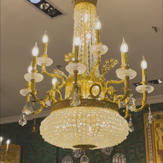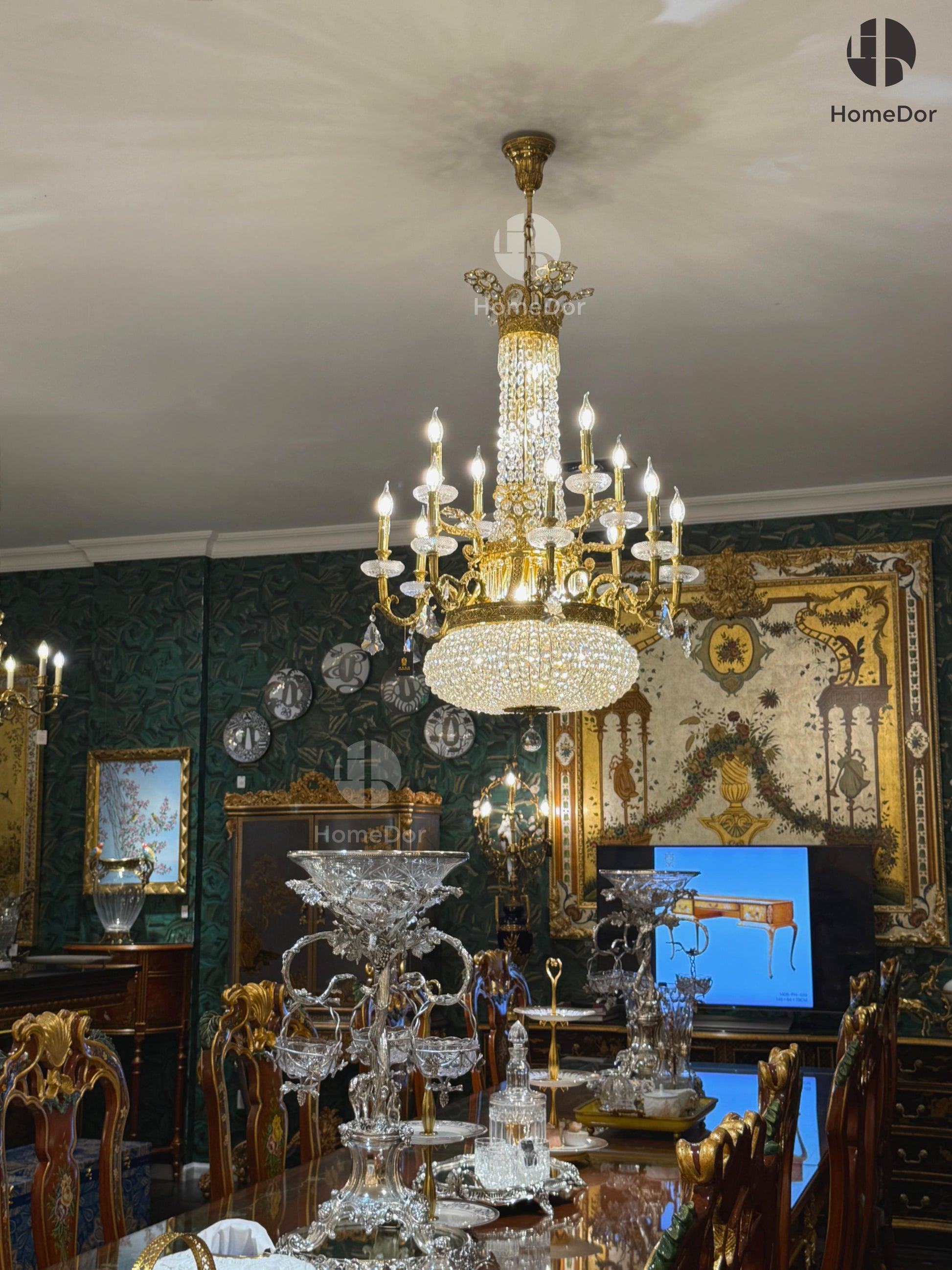 Esta lámpara de araña captura el majestuoso encanto de la grandeza de la época imperial, reinventada a través del magistral equilibrio de FH&Home entre ornamentación clásica y estructura refinada. Diseñada y elaborada artesanalmente por FH&Home, presenta un imponente marco de latón adornado con capas en cascada de cristales de alta claridad, cada faceta que refracta la luz con un brillo rítmico y majestuoso. Las luces tipo vela evocan el romanticismo de los salones del siglo XIX, mientras que la simetría y la riqueza de los materiales de la lámpara rinden homenaje a la atemporal elegancia imperial.