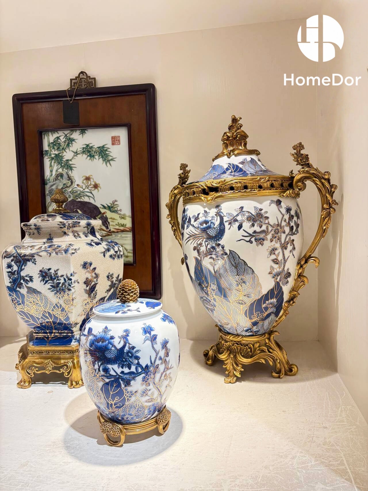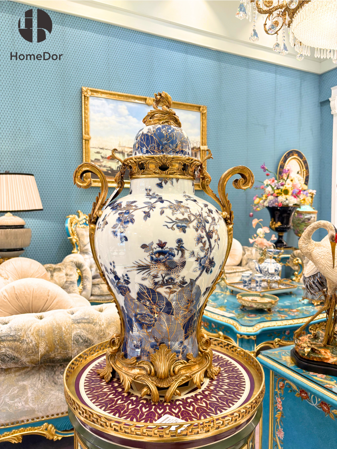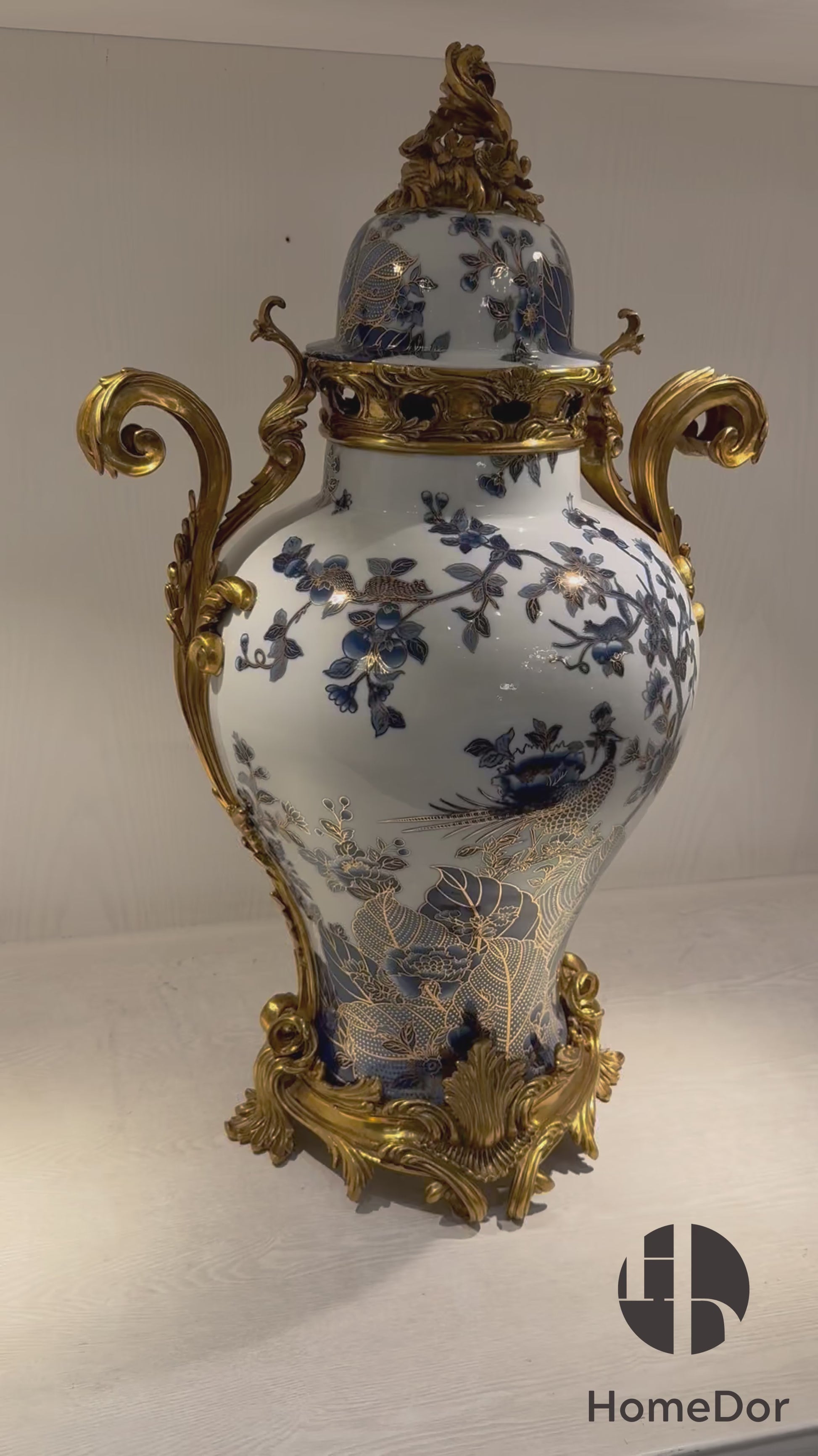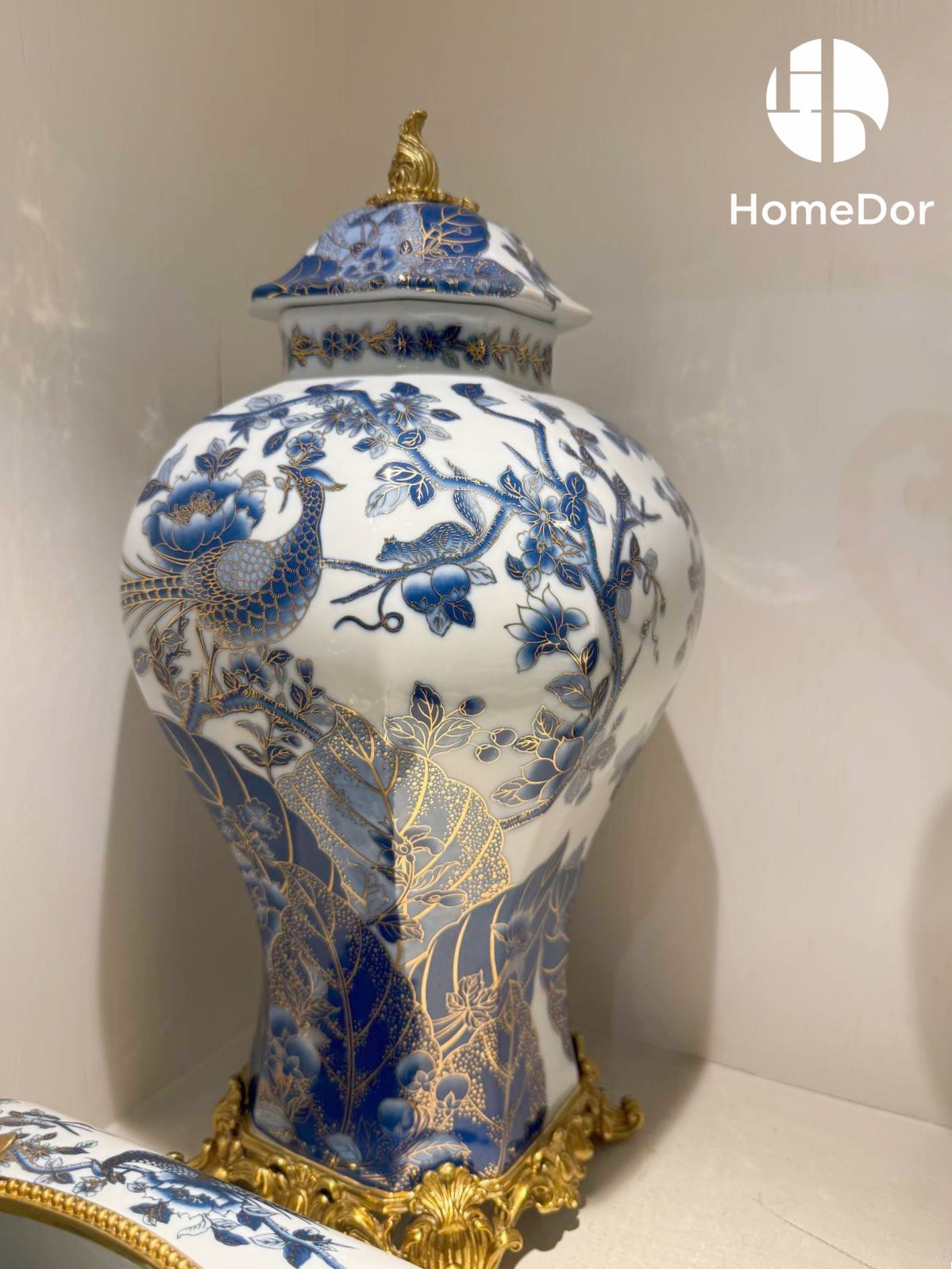 Este jarrón barroco de porcelana con pájaros azul y blanco y tallas doradas es una suntuosa y elegante incorporación a la colección HomeDor × FH&Home. Combina a la perfección el encanto clásico del diseño barroco con la intrincada belleza de la porcelana azul y blanca y las opulentas tallas doradas, infundiendo en cualquier espacio una sensación de lujo atemporal.