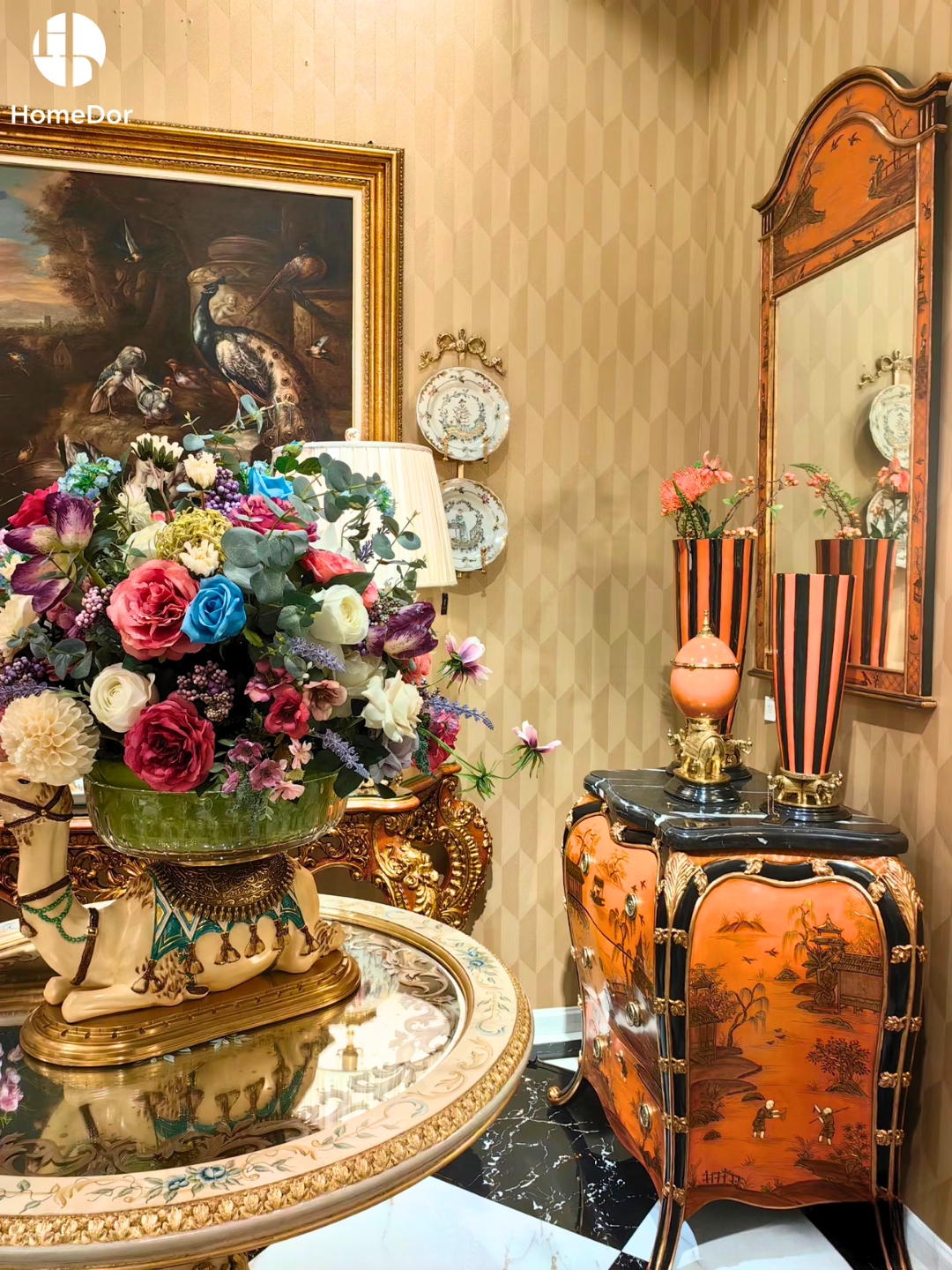 HomeDor × FH&Home | Chinoiserie Tangerine Scenic Motif Arched Wall Mirror