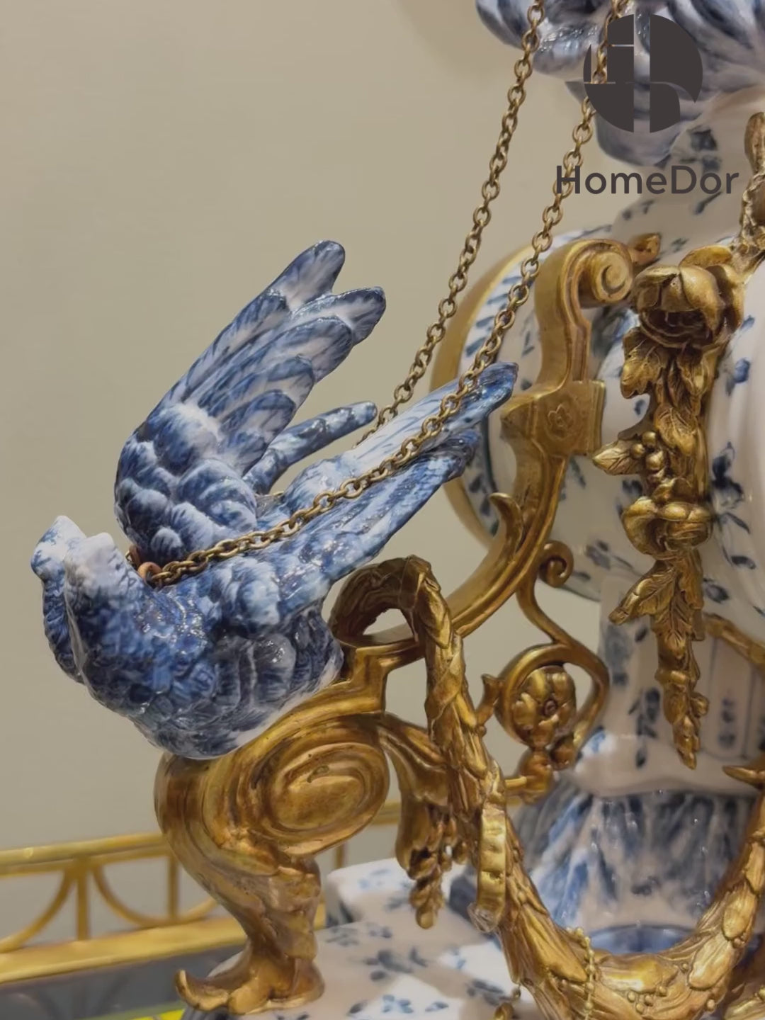 This Romantic Cherub & Bird Accent Mantel Clock Set merges baroque whimsy with artisanal detail: each clock centers on a sculpted cherub (suspending the Roman-numeral clock face via delicate chains), paired with hand-painted porcelain accents (pastel florals or blue-and-white motifs) and ornate gilt brass scrollwork. Adorned with bird sculptures and miniature portrait medallions, the set blends functional timekeeping with decorative charm—offering two distinct styles (pastel floral & classic blue-and-white) to suit varied vintage or romantic decor schemes.