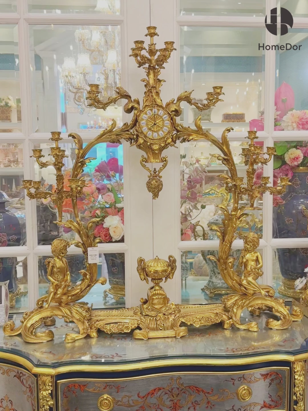 HomeDor Royal Rococo Golden Candelabra Clock Set Collector's Piece