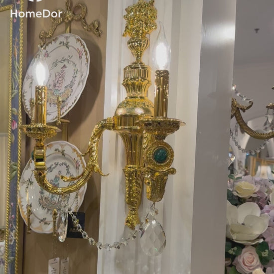 Channel timeless French opulence with the Vintage French Gold 2-Arm Wall Sconce — a classic 2-arm fixture that embodies 18th-century courtly design. Crafted from polished gilded brass, its frame features intricate scrollwork and sculpted details (echoing traditional French rococo aesthetics), paired with candle-style bulb holders for an authentic vintage look. Subtle emerald-hued accents at the base of each arm add a touch of regal contrast, elevating the sconce from a functional light to a decorative statement piece.