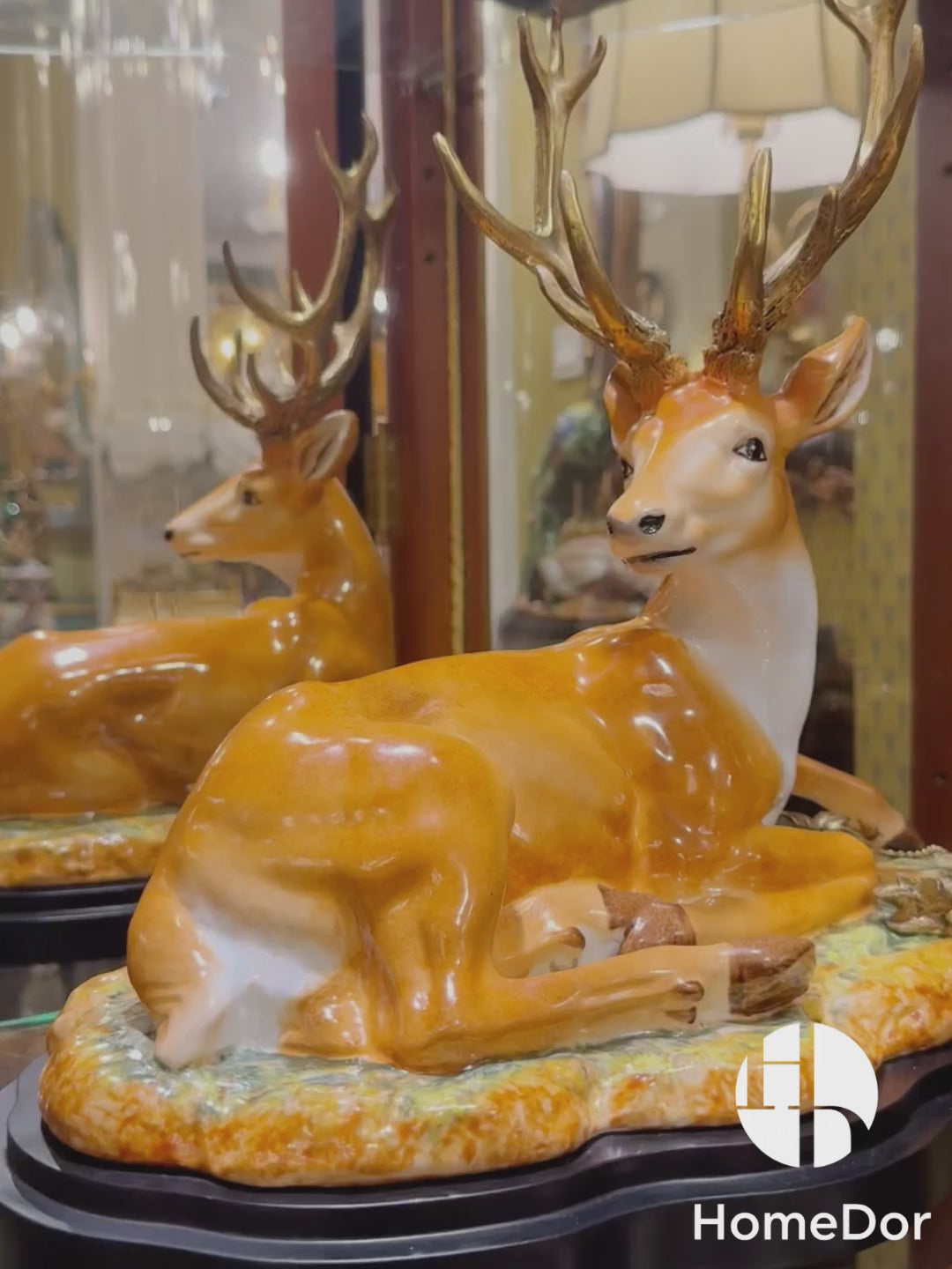 This exquisitely crafted sculpture captures the serene majesty of a resting sika deer, featuring a glossy, hand-painted chestnut coat and striking gilded antlers that radiate opulence. The lifelike details—from the soft texture of its fur to the gentle curve of its antlers—are brought to life with rich, warm tones, while the layered base with a black plinth elevates its presence. Blending natural elegance with luxurious craftsmanship, this piece serves as a sophisticated focal point for living rooms, entryways, or office spaces, making it an ideal addition for nature lovers and collectors of refined, statement-making decor.