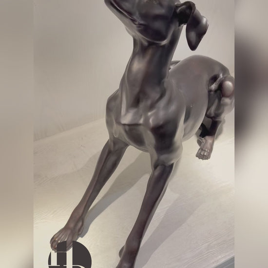 Una armoniosa combinación de elegancia y arte atemporal, esta lujosa estatua de galgo de bronce de estilo clásico con detalles realistas, de la colección HomeDor x FH&Home, es una obra maestra del diseño escultórico. Inspirada en las tradiciones del arte clásico, captura la gracia y el atletismo del galgo con exquisito detalle.