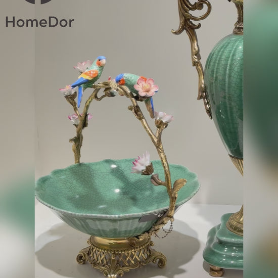 This Artistic Lush Green Crackle Porcelain Table Decor Set with Brass Embellishments is a remarkable collection in the HomeDor series, representing a perfect combination of artistic design and fine craftsmanship. The set features a stunning blend of lush green crackle porcelain and exquisite brass embellishments, making it a truly unique and captivating addition to any space.