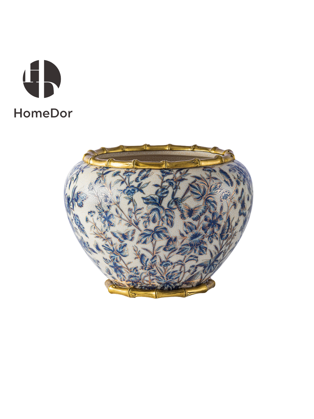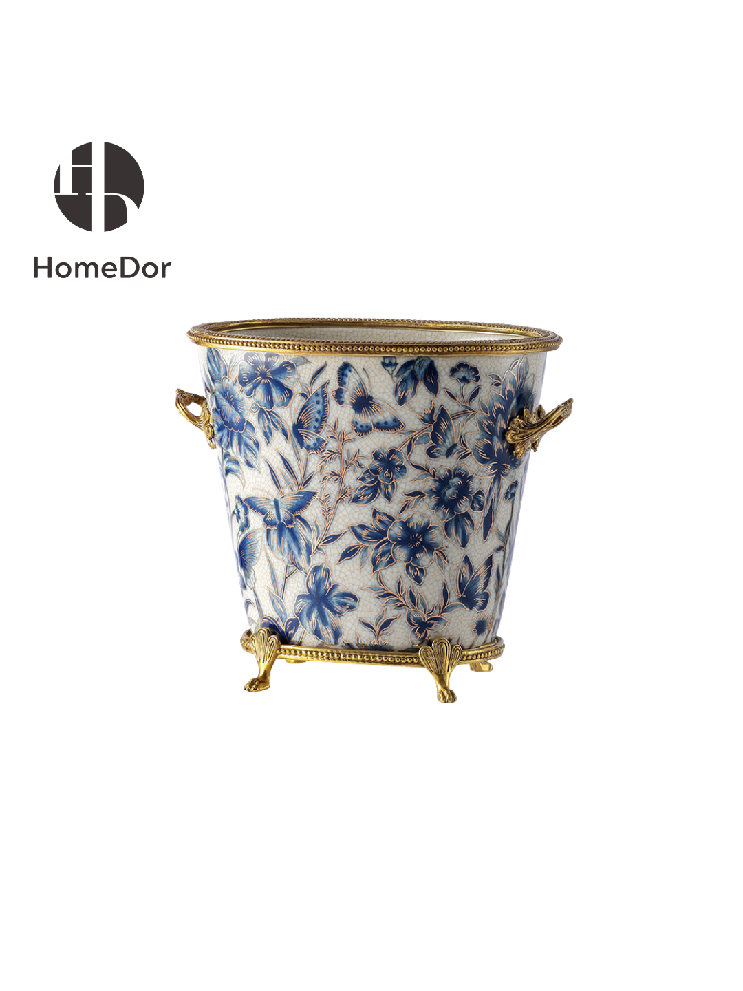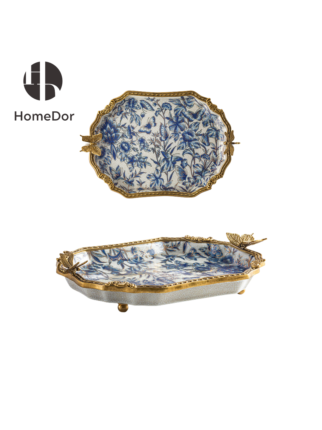 The HomeDor Elegant Blue & White Butterfly Gilded Decor Set blends timeless Chinoiserie charm with lavish gilded detailing: featuring delicate blue-and-white butterfly and floral motifs, each piece (from lidded urn to tray) is accented with ornate gilded hardware that elevates its classic elegance. Perfect for styling on dining tables, entry consoles, or living room shelves, this set infuses spaces with East-meets-West sophistication—ideal for both everyday decor and special gatherings.