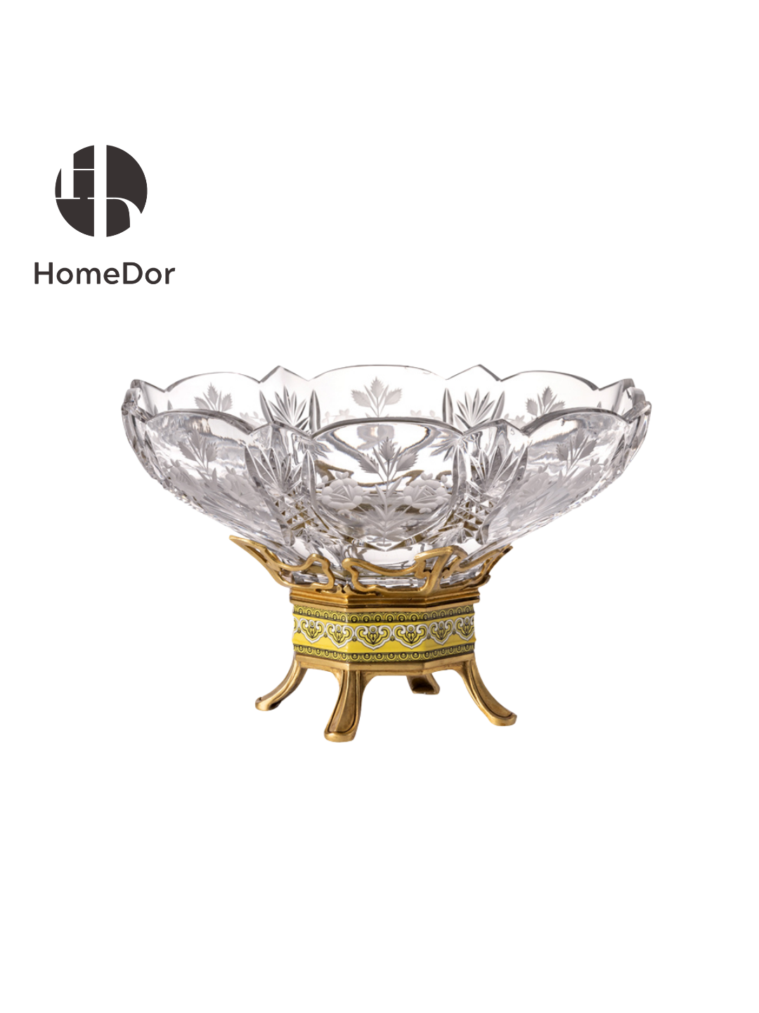 The Exquisite Petal-Edge Crystal Tazza with Gilded Yellow Base blends timeless charm: a petal-rimmed, floral-engraved crystal bowl (light-catching sparkle) pairs with an ornate gilded pedestal (yellow patterned trim + curved legs). Ideal for dining table displays, living room accents, or entryway statements—this tazza merges luxury craftsmanship with functional elegance.