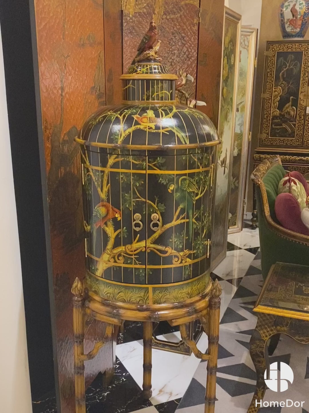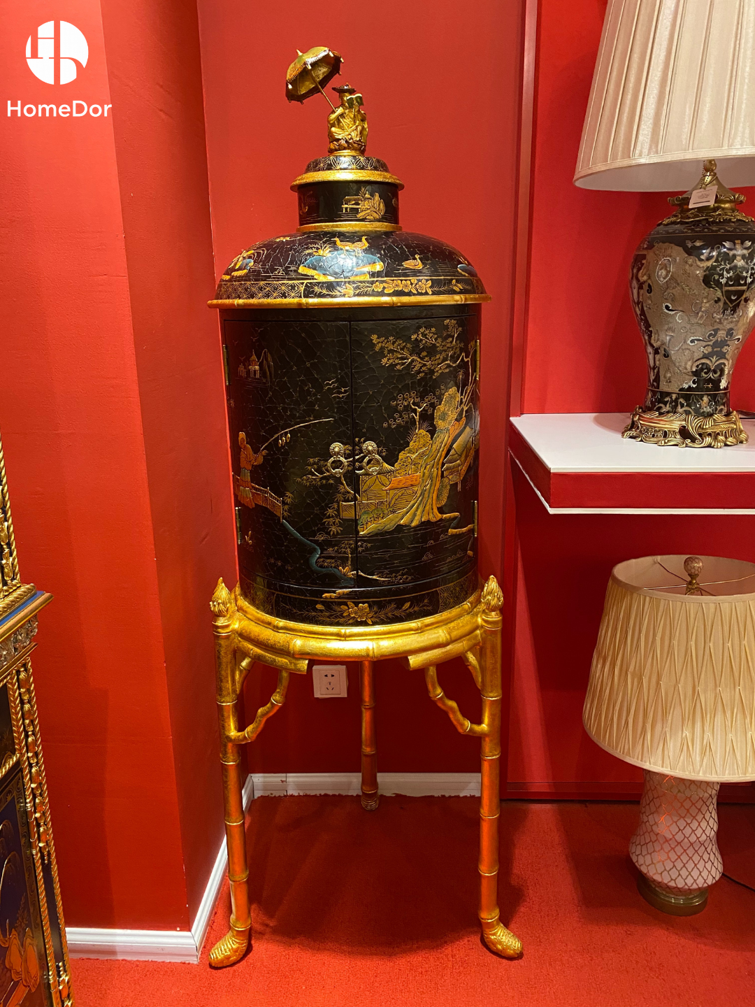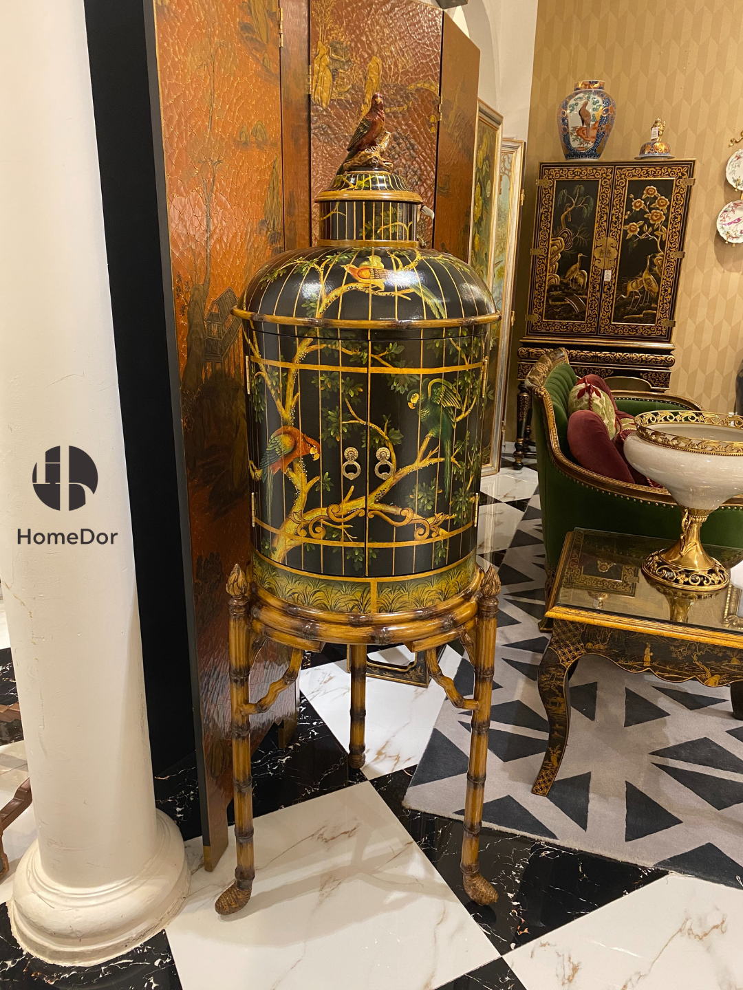 HomeDor Chinoiserie Lacquered Side Cabinet