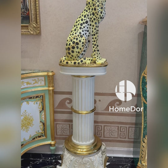 HomeDor × FH&Home | Classic European-Style Corinthian Cheetah Sculpture with Gold Pedestal