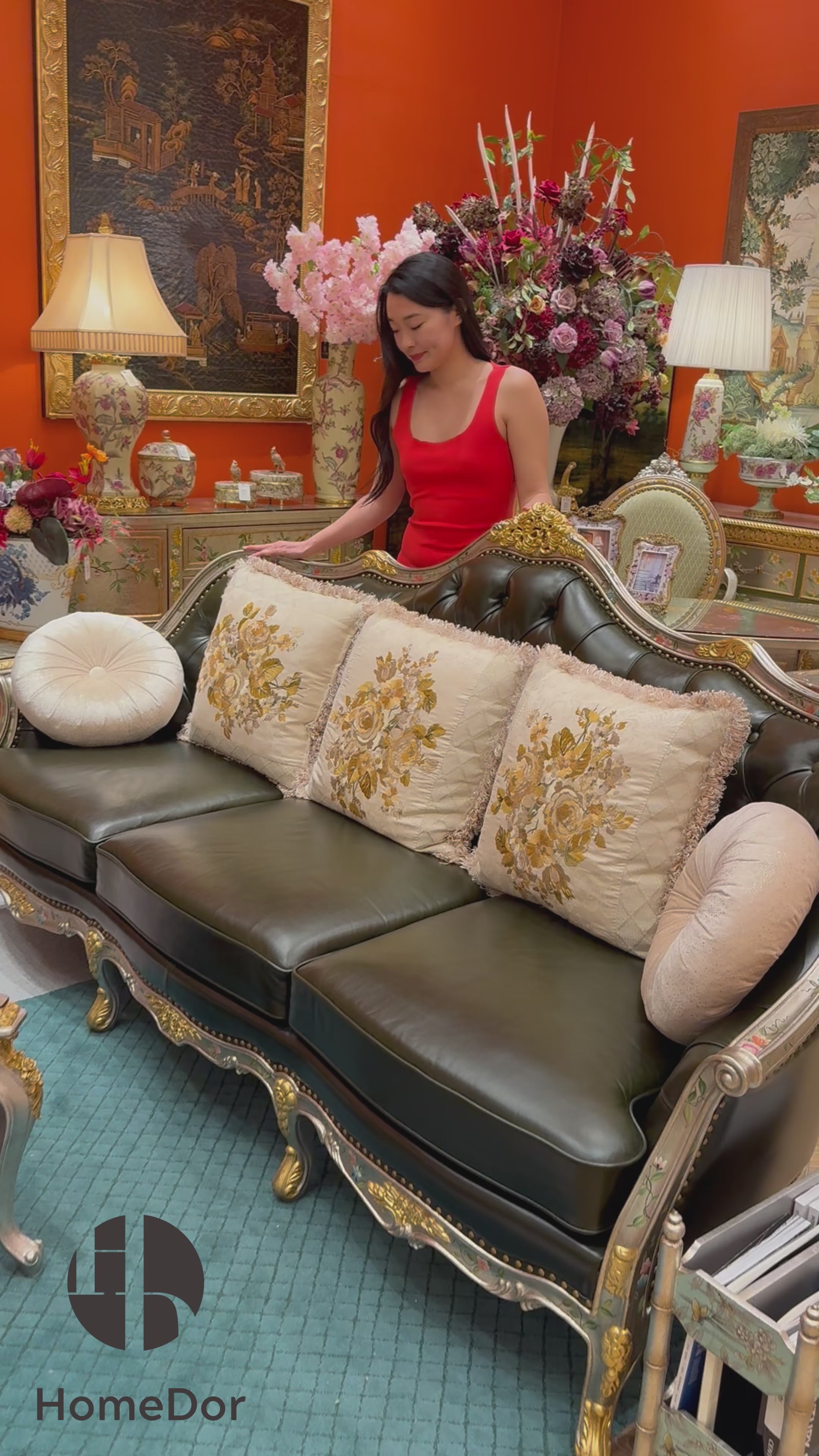 HomeDor × FH&Home | Classic French Chateau Style Handcrafted Carved Leather Sofa