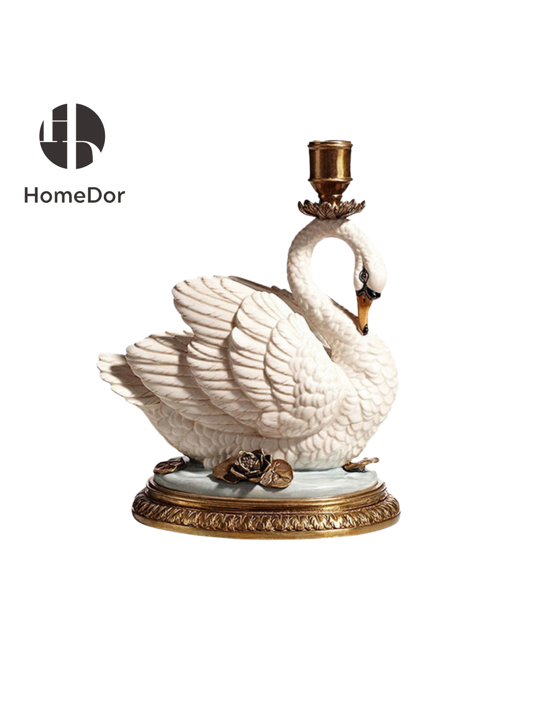 HomeDor Exquisite Classical Porcelain Swan Candle Holder Copper Candelabra