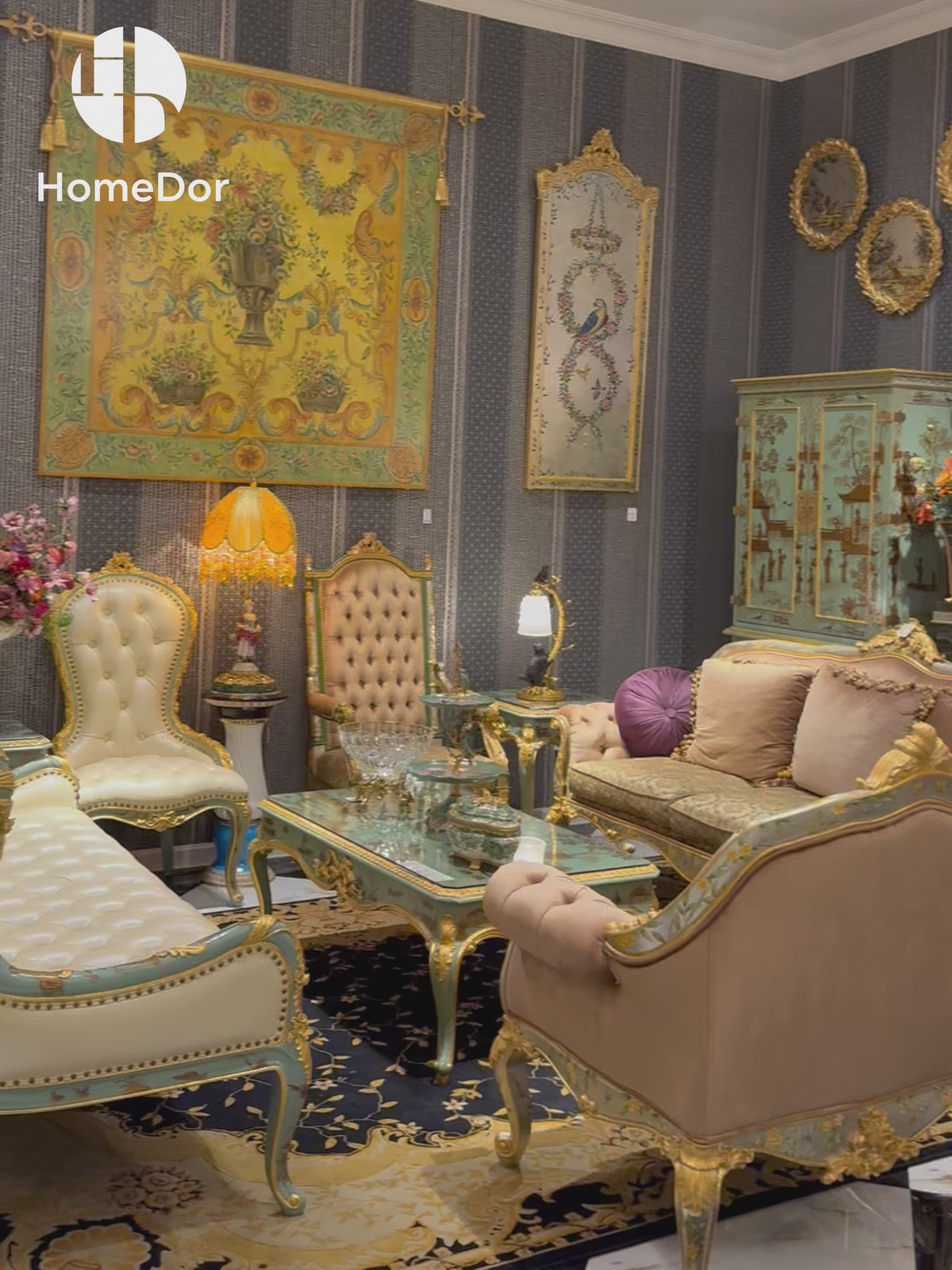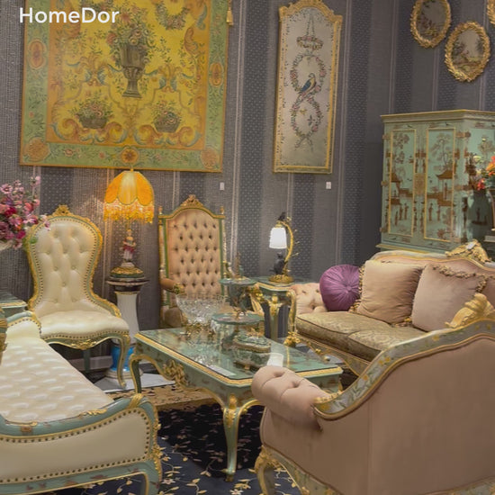 A crowning piece of the Marlene Series, this display cabinet is a testament to cross-cultural design excellence. Adorned with a turquoise finish, hand-painted gold landscape artwork, and intricate detailing, it functions as both a storage solution and a gallery-worthy showpiece, infusing any space with the grandeur of Sino-French artistry.