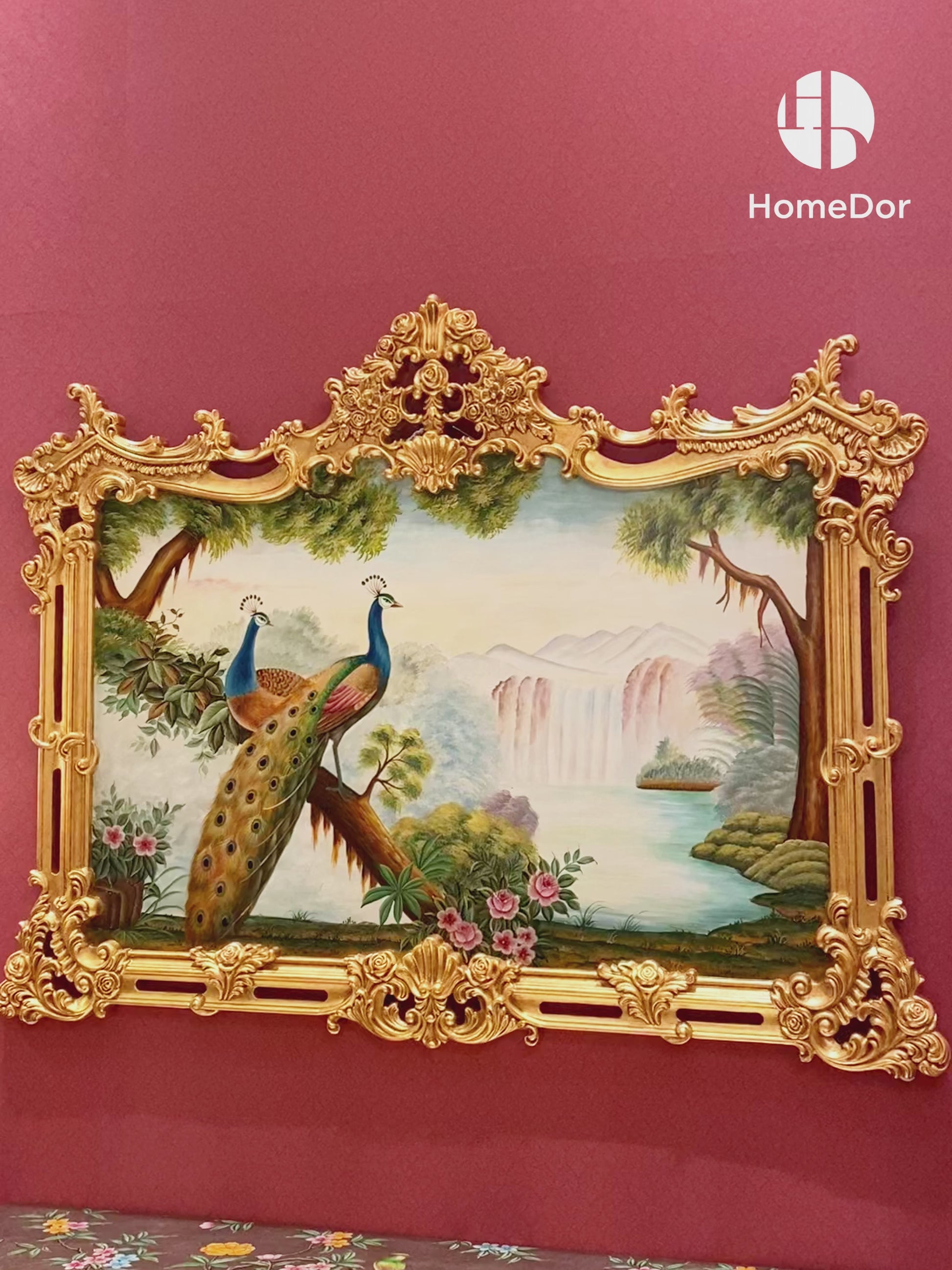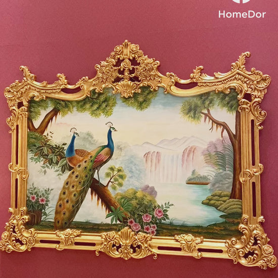 Elevate your interior with the Opulent Baroque Carved Frame Peacock & Natural Wall Decor from HomeDor. This extraordinary piece fuses the grandeur of Baroque design with the allure of nature. The elaborately carved, gold - hued frame, boasting intricate scrollwork and floral patterns, radiates timeless luxury. Inside, a vivid scene unfolds—resplendent peacocks with dazzling plumage perch amidst lush greenery, while a cascading waterfall and serene waterscape create a tranquil natural oasis. Meticulously crafted, this wall decor is more than just art; it's a statement that brings the magnificence of Baroque artistry and the beauty of the natural world into your home, instantly transforming any space into a realm of opulence and artistic inspiration.