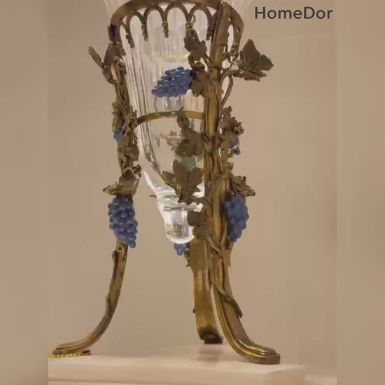 HomeDor × FH&Home | Prague Collection European Style Crystal Glass Vase with Brass Vines and Blue Grapes