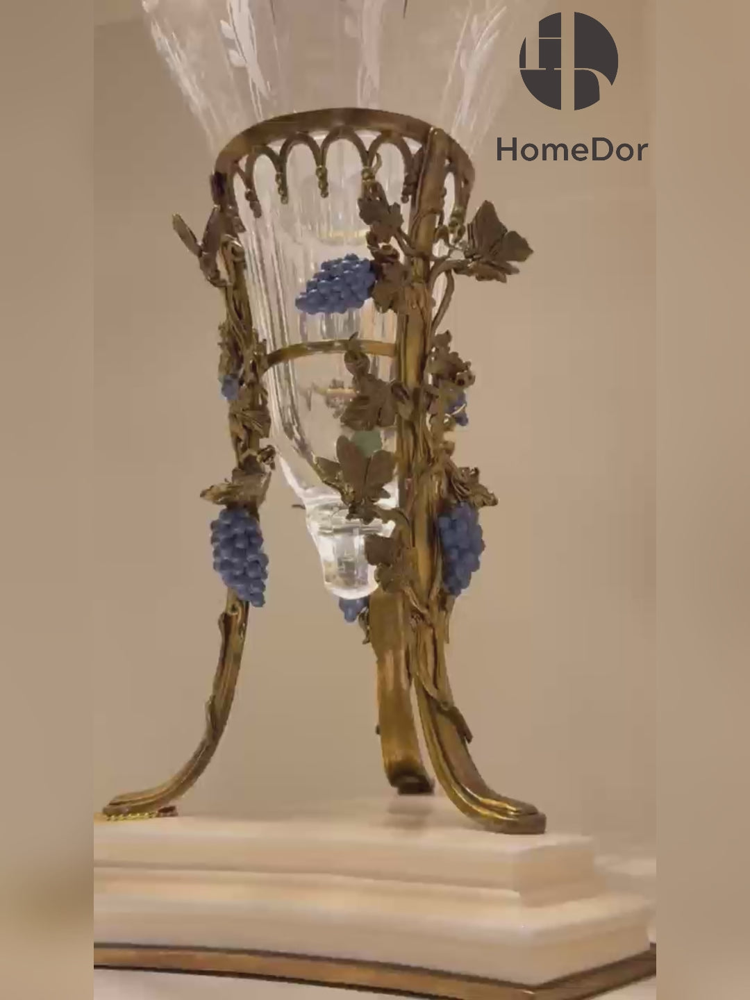 Materials: Crystal Glass (main body) + Brass (grapevines & detailing) + Porcelain (base)