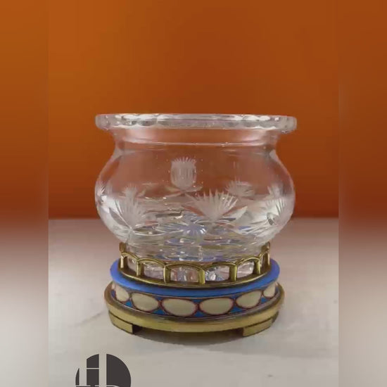 Materials: Crystal Glass (body) + Copper (base elements) + Porcelain
