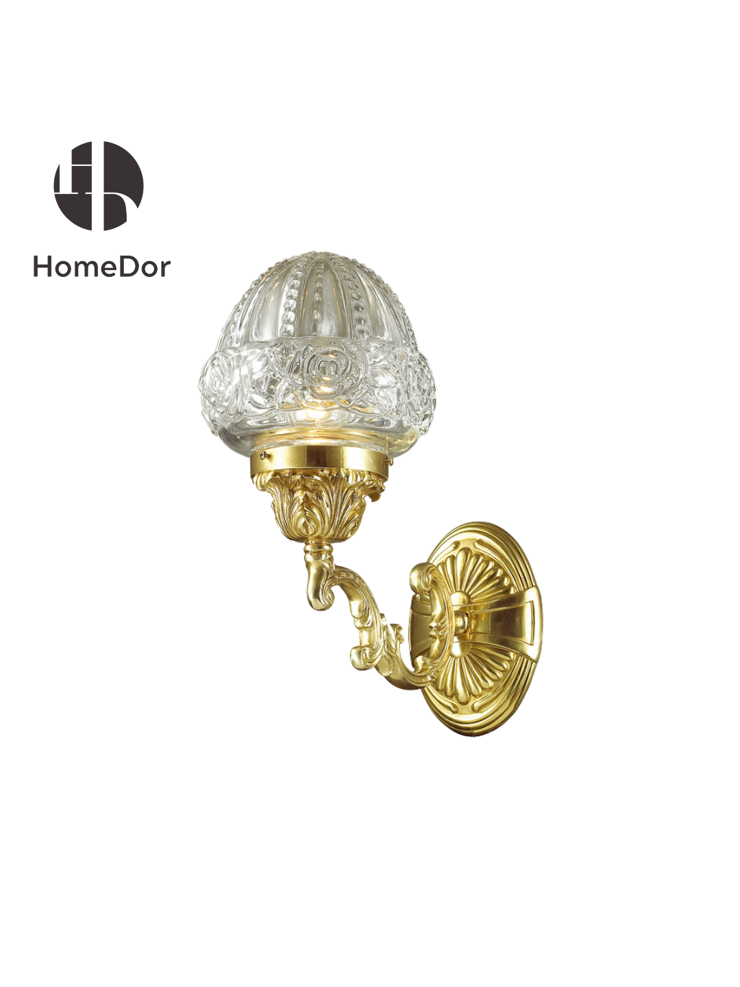 This exquisite wall sconce from HomeDor is a breathtaking embodiment of timeless luxury, reimagined with Baroque-inspired opulence. Crafted from rich gilded metal, the ornate backplate and gracefully curved arm are adorned with intricate scrollwork and floral carvings that exude old-world grandeur. A domed clear glass shade, embossed with delicate rose motifs, refracts light into a dazzling, luminous display, casting a warm, inviting glow that elevates any interior. More than a light fixture, this sconce is a wearable work of art, designed to be the focal point of grand entryways, formal dining rooms, or stately hallways, infusing every space with timeless elegance and lavish detail.